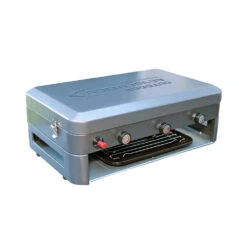 An essential for any family camping trip, this multi-functional Camping Chef Folding CV has 2 powerful and efficient burners plus an additional downward grill.The Camping Chef Folding CV operates off Campingaz CV 470 Plus cartridges for