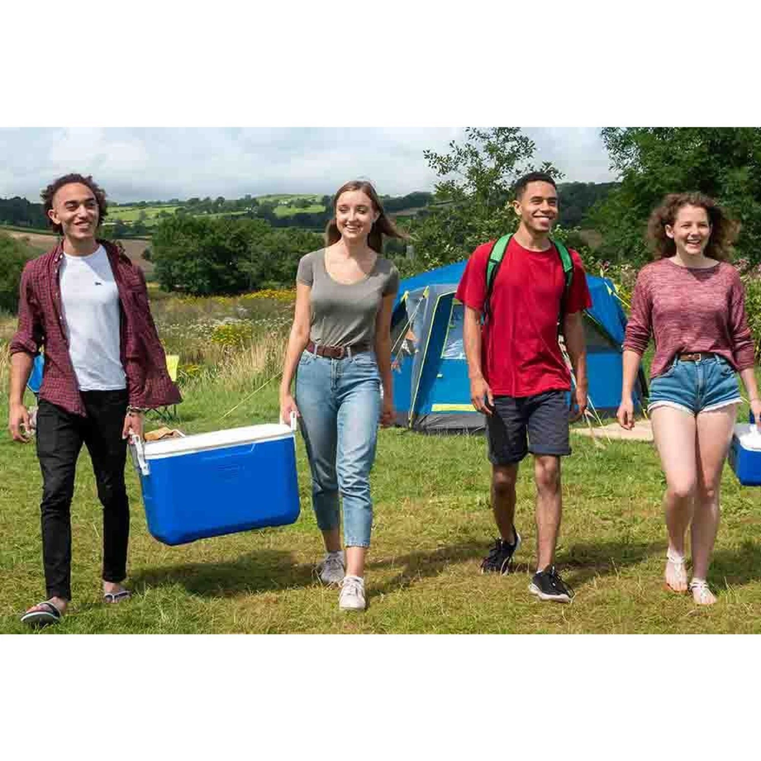 The Peformance 6 Personal Cooler is always a trusted standby. The Coleman®-quality insulation will give you great cooling performance for your camping trip, family picnic, BBQ or outdoor event. Features and Specifications: A generous 4.7 litre capacity allows you to store up to 6 0.33Litre cans Robust casing and sturdy lid makes this cooler perfect for long road trips and camping Versatile reversible FlipLid top can also be used as a serving tray with engraved beverage holders for your peace of mind Safety locking system ensures that the inner contents of the cooler stay secure during transportation Ice retention of up to 9 hours keeps your food and beverages cold for up to 9 hours Capacity: 4.7 Litres Total weight: 0.8 Kg Color: Blue Inner product dimensions: 22 x 16 x 13 cm Outer product dimensions: 27 x 20 x 18 cm