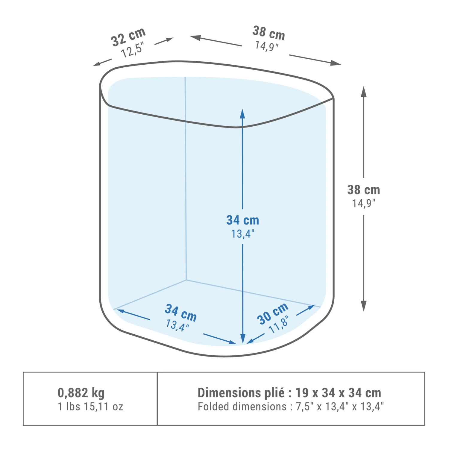 Internal dimensions: Height : 34 cm | Length: 34 cm | Width: 30 cm