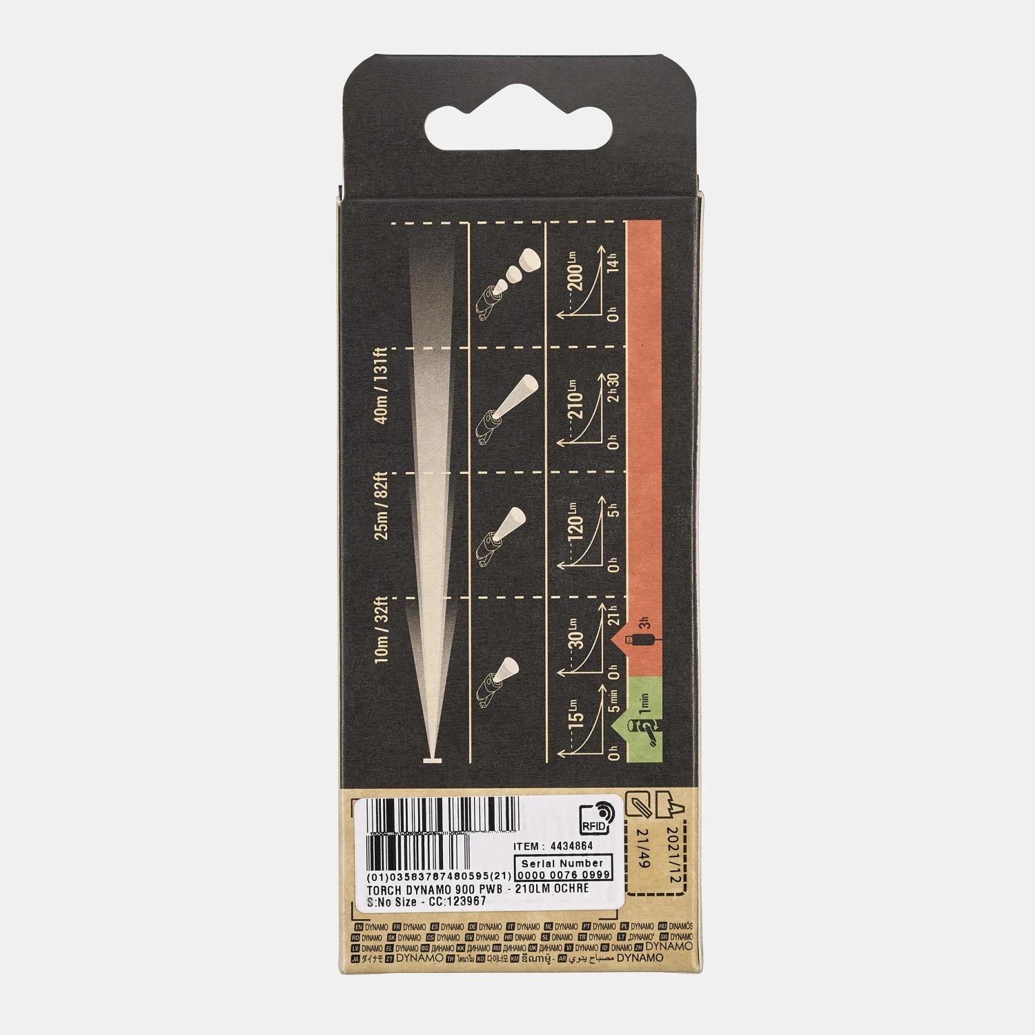A rechargeable torchlight designed by our team of mountain trekking enthusiasts that can be used as a back-up torch or USB charger when bivouacking.The DYNAMO 900 torch is rechargeable by USB and autonomous thanks to its dynamo. It can also be used as an external battery to partially charge your phone (between 25% and 50%)