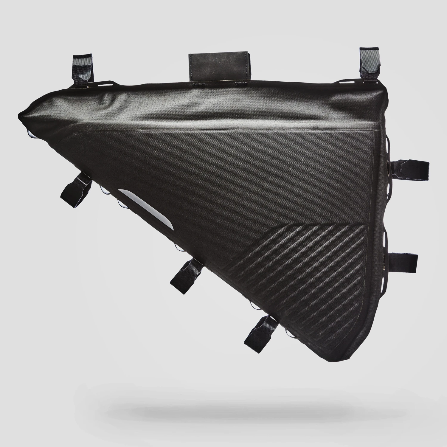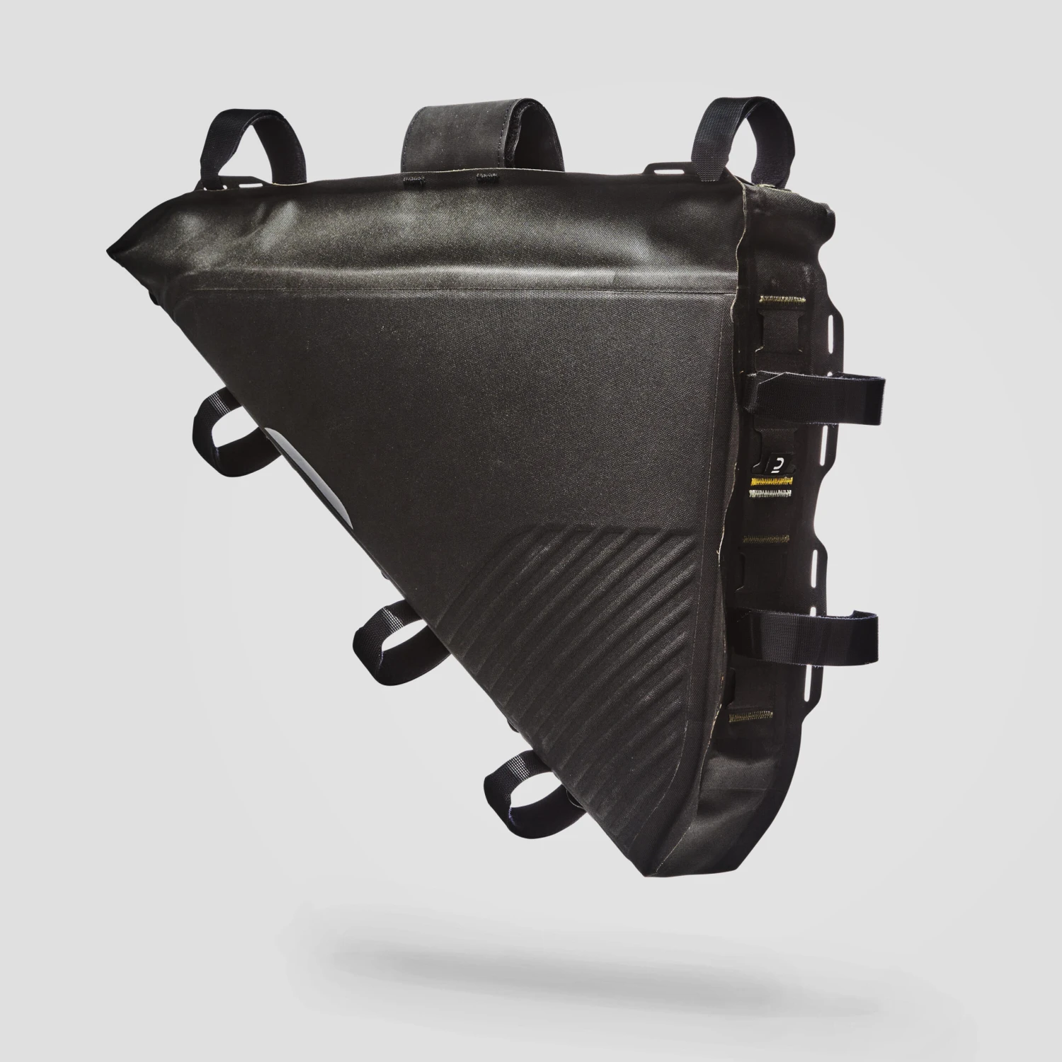 Our team of bikepackers has designed this IPX6 waterproof frame bag for storing heavy items and/or for quickly accessing your things when bikepackingIt is extremely durable and watertight (IPX6) thanks to its roll-top design.
